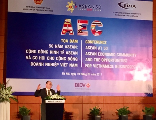 Đây chính là nội dung và mục đích của buổi Tọa đàm “50 năm ASEAN: Cộng đồng kinh tế ASEAN và cơ hội cho doanh nghiệp Việt Nam”, một sự kiện nhân kỷ niệm 50 năm thành lập Hiệp hội các quốc gia Đông Nam Á (ASEAN), do Bộ Ngoại giao Việt Nam phối hợp với Viện nghiên cứu kinh tế ASEAN và Đông Á (ERIA) Nhật Bản tổ chức sáng nay tại Hà Nội.