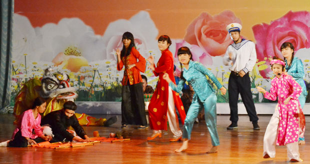 | Chương trình nghệ thuật do các em nạn nhân chất độc da cam và các tình nguyện viên thực hiện tại chương trình “Mùa xuân cho em” (Ảnh: baodanang.vn) |