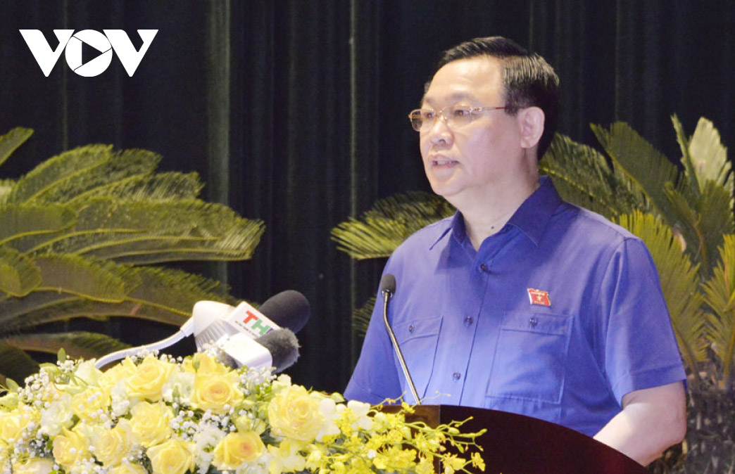 Chủ tịch Quốc hội Vương Đình Huệ trình bày trước cử tri - Ảnh: VOV |