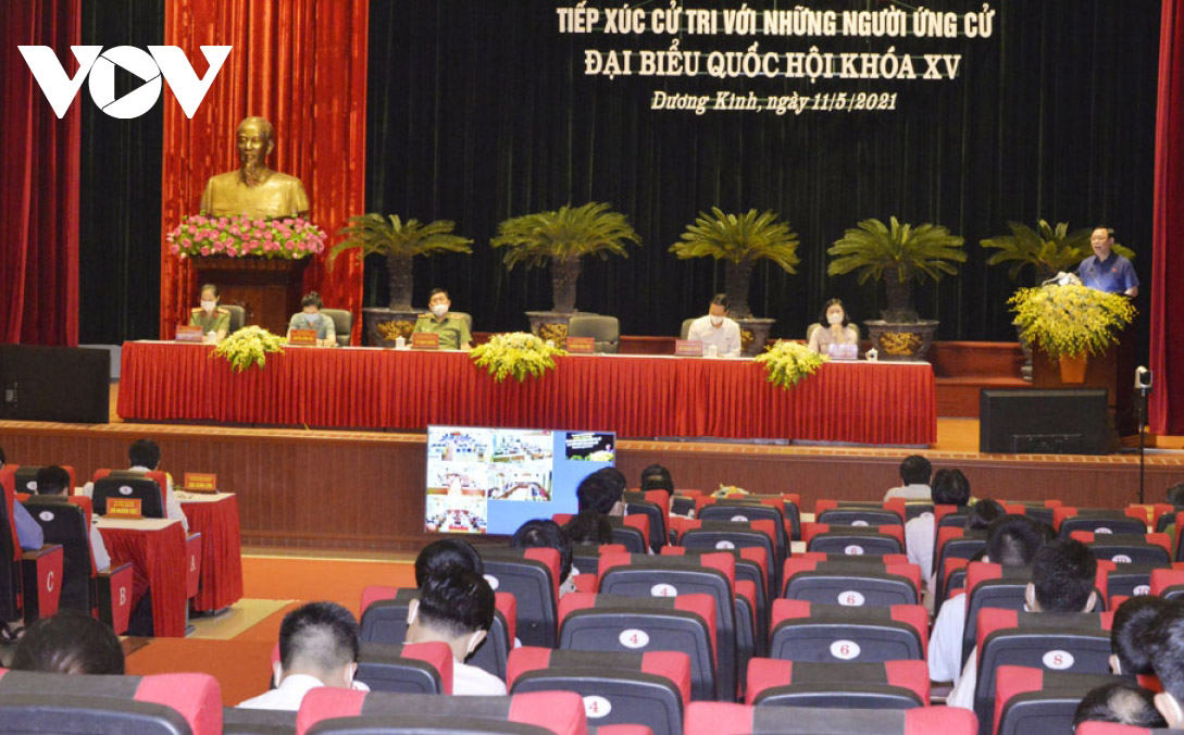 Tiếp tục thực hiện việc tiếp xúc cử tri để trình bày chương trình hành động trước khi bầu cử đại biểu Quốc hội khóa XV và đại biểu Hội đồng nhân dân các cấp nhiệm kỳ 2021-2026, trong hai ngày 10 -11/5, Chủ tịch Quốc hội Vương Đình Huệ và các ứng cử viên Đơn vị bầu cử số 3, TP Hải Phòng đã tiếp xúc cử tri tại huyện Tiên Lãng, quận Kiến An, Dương Kinh.