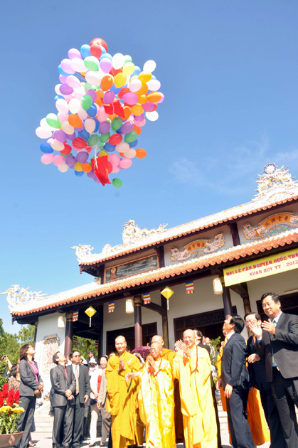 Các đại biểu làm lễ thả bong bóng cầu nguyện cho thế giới hòa bình-nhân loại hạnh phúc