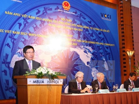 Phó Thủ tướng, Bộ trưởng Bộ Ngoại giao Việt Nam Phạm Bình khẳng định như vậy tại hội thảo "Năm APEC 2017: Hướng tới Cộng đồng APEC năng động, tự cường và gắn kết", diễn ra sáng nay (24/06), tại Hà Nội. Phó Thủ tướng Phạm Bình Minh chỉ rõ việc lần thứ hai đăng cai Năm APEC là đóng góp quan trọng nhất của Việt Nam đối với Diễn đàn trong bối cảnh mới, hướng tới kỷ niệm 20 năm Việt Nam trở thành thành viên của APEC (1998 – 2018). Năm APEC 2017 cũng là dịp để Việt Nam thể hiện quyết tâm hội nhập quốc tế sâu rộng; đồng thời là cơ hội để Việt Nam cùng các thành viên Cộng đồng ASEAN vun đắp tình hữu nghị, hợp tác và gắn kết với các đối tác, các doanh nghiệp, bè bạn khu vực. Phó Thủ tướng đề nghị các Bộ, ngành, địa phương và doanh nghiệp kịp thời đổi mới cách nghĩ, cách làm, chuyển sang tư duy “chủ động đóng góp và tích cực đề xuất ý tưởng, sáng kiến”. Các cơ quan, viện nghiên cứu và doanh nghiệp Việt Nam cần chủ động nắm bắt các xu thế, đẩy mạnh nghiên cứu để đề xuất ý tưởng, sáng kiến cụ thể cho Năm APEC 2017.