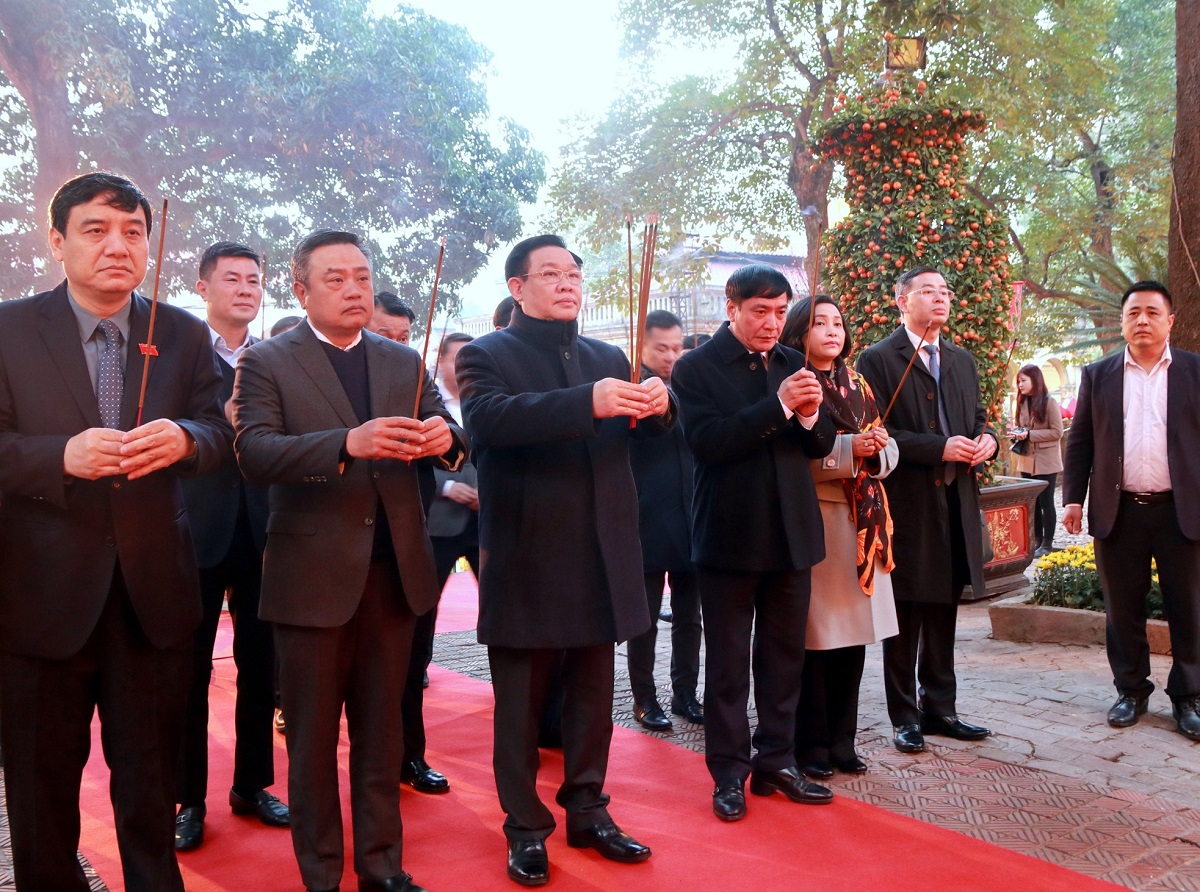 Chủ tịch Quốc hội Vương Đình Huệ, Văn phòng Quốc hội, lãnh đạo Thành ủy - UBND TP. Hà Nội dâng hương tưởng nhớ, kính cẩn cáo trước anh linh các bậc tiền nhân. Ảnh: Vũ Hải/tienphong.vn |