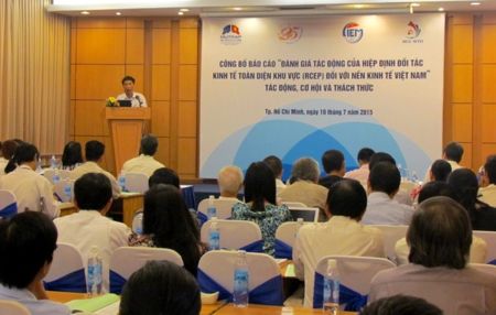 Sáng nay, tại Hà Nội, Dự án hỗ trợ chính sách thương mại và đầu tư của Châu Âu phối hợp với Viện Nghiên cứu quản lý kinh tế Trung ương công bố báo cáo “Đánh giá tác động của Hiệp định đối tác toàn diện khu vực (RCEP) đối với nền kinh tế Việt Nam”. Hiệp định đối tác toàn diện khu vực là Hiệp định thương mại tự do chất lượng cao hướng tới mục tiêu hình thành quan hệ đối tác kinh tế toàn diện giữa ASEAN với 6 đối tác gồm: Trung Quốc, Nhật Bản, Hàn Quốc, Australia, New Zealand và Ấn Độ. Báo cáo cho thấy: giống như các điều ước hội nhập kinh tế quốc tế, Hiệp định đối tác toàn diện khu vực (RCEP) mang lại không ít cơ hội và thách thức với Việt Nam.