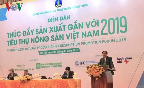 Sáng 5/3, tại Hà Nội, Bộ Nông nghiệp và Phát triển nông thôn phối hợp Bộ Công Thương tổ chức Diễn đàn “Thúc đẩy sản xuất gắn với tiêu thụ nông sản Việt Nam năm 2019”.