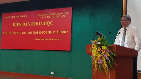 Sáng nay (4/9), tại Hà Nội, Ban Kinh tế Trung ương phối hợp với Liên hiệp các Hội khoa học và kĩ thuật Việt Nam tổ chức Diễn đàn khoa học “Kinh tế Việt Nam 2016-2020- một số đột phá phát triển”. Tham dự diễn đàn có gần 200 đại biểu đại diện các bộ, ban, ngành, địa phương, các đơn vị nghiên cứu cùng các chuyên gia, các nhà khoa học.