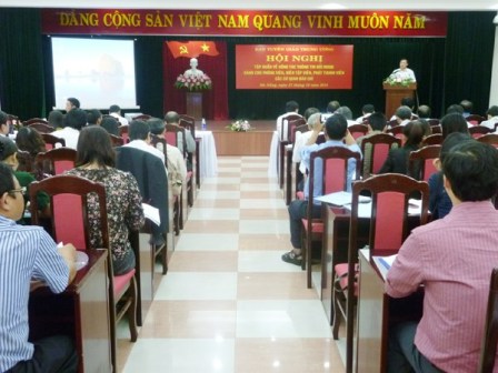 Đó là ý kiến chỉ đạo của lãnh đạo Ban Tuyên giáo Trung ương tại hội nghị tập huấn về công tác thông tin đối ngoại cho đội ngũ phóng viên, biên tập viên, phát thanh viên ở khu vực miền Trung - Tây Nguyên ngày 27/10 tại thành phố Đà Nẵng. Ông Phạm Văn Linh, Phó Trưởng Ban Tuyên giáo Trung ương, Phó Trưởng Ban Thường trực Ban Chỉ đạo Công tác thông tin đối ngoại, cho biết: “Công tác cung cấp kiến thức thông tin chuyển sâu giúp cho phóng viên, biên tập viên nắm được thông tin cần thiết thực hiện thông tin đối ngoại là nhiệm vụ quan trọng. Hội nghị lần này, những kiến thức về chủ quyền, tính pháp lý trong đấu tranh là những nội dung quan trọng trong thời gian vừa qua. Việc đấu tranh phản bác các quan điểm sai trái thù địch nhất là trên những lĩnh vực dân chủ, nhân quyền, tôn giao thông qua các báo cáo được chuẩn bị công phu.”