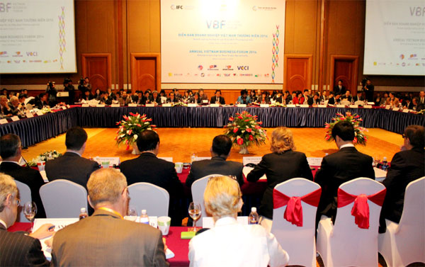 (VOV5) - Đây là chủ đề của Diễn đàn Doanh nghiệp Việt Nam thường niên (VBF) 2014 cuối kỳ, diễn ra sáng nay, tại Hà Nội. Đây là kênh đối thoại chính thức giữa Chính phủ và cộng đồng doanh nghiệp tại Việt Nam, nhằm xây dựng một môi trường kinh doanh thuận lợi, thu hút đầu tư và kích thích tăng trưởng kinh tế.