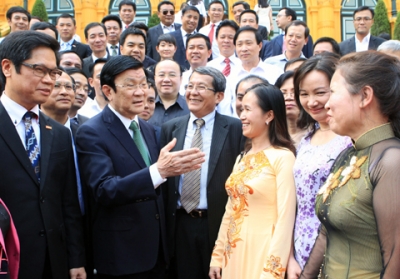 | Chủ tịch nước Trương Tấn Sang với các doanh nhân Việt Nam tiêu biểu (Ảnh: TTXVN) |
