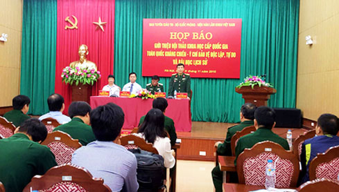 Ngày 25/11 tại Hà Nội sẽ diễn ra hội thảo khoa học cấp quốc gia “Toàn quốc kháng chiến ý chí bảo vệ độc lập, tự do và bài học lịch sử”. Tại hội thảo, dự kiến sẽ có hơn 100 tham luận của các vị lãnh đạo Đảng, Nhà nước, Quân đội; các nhà khoa học trong và ngoài quân đội; một số nhân chứng lịch sử với nhiều tư liệu, thông tin, nhận thức mới và góc độ khác nhau, tập trung làm rõ hơn, sâu sắc hơn, hệ thống và đầy đủ hơn về sự kiện mở đầu Toàn quốc kháng chiến. Đây là thông tin được đưa ra tại cuộc họp báo do Bộ Quốc phòng phối hợp với Ban Tuyên giáo Trung ương và Viện Hàn lâm Khoa học xã hội Việt Nam tổ chức sáng 21/11 ở Hà Nội.