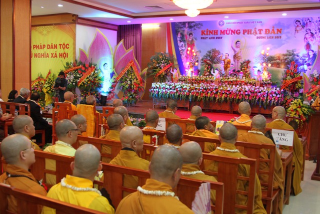 Sau các nghi thức tôn giáo, dâng hoa chúc mừng Phật đản, Hòa thượng Thích Thanh Nhiễu, Phó Chủ tịch Thường trực Hội đồng Trị sự tuyên đọc thông điệp của Đức Pháp chủ Giáo hội Phật giáo Việt Nam gửi tăng ni, cư sĩ, Phật tử Việt Nam trong nước và nước ngoài nhân Đại lễ Phật đản Phật lịch 2557. Tiếp đó, Hòa thượng Thích Gia Quang, Phó Chủ tịch Hội đồng Trị sự, Trưởng Ban Thông tin Truyền thông, Giáo hội Phật giáo Việt Nam đọc Diễn văn Đại lễ Phật đản của Hòa thượng Chủ tịch Hội đồng Trị sự Giáo hội phật giáo Việt Nam Thích Trí Tịnh.