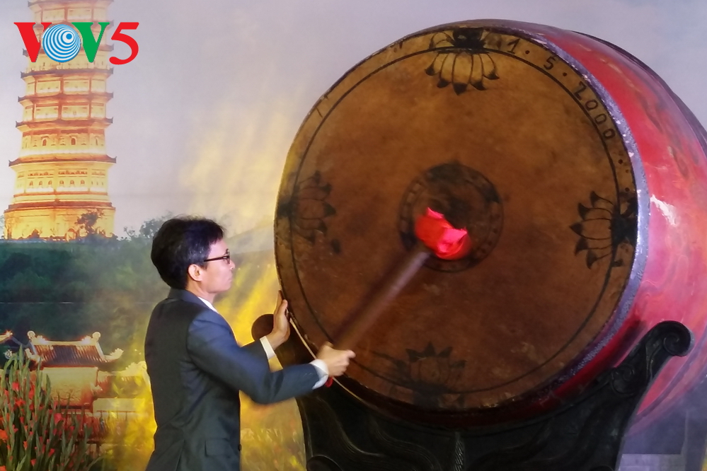 Phó Thủ tướng Chính phủ Vũ Đức Đam đánh trống khai hội.