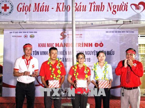 Trước đó, vào tối 13/6, Ban Tổ chức Hành trình Đỏ phối hợp với Ban Chỉ đạo vận động hiến máu tình nguyện tỉnh Cà Mau tổ chức Lễ khai mạc Hành trình đỏ năm 2018 và tôn vinh người hiến máu tình nguyện tiêu biểu; tổ chức ngày hội hiến máu “Giọt hồng Đất Mũi” năm 2018.