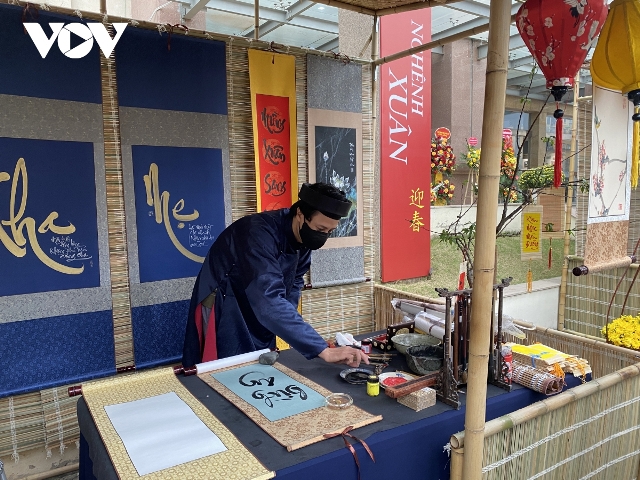 Nhiều hoạt động tương tác thú vị của phiên chợ ngày Xuân được tổ chức tại triển lãm. ảnh: VOV |