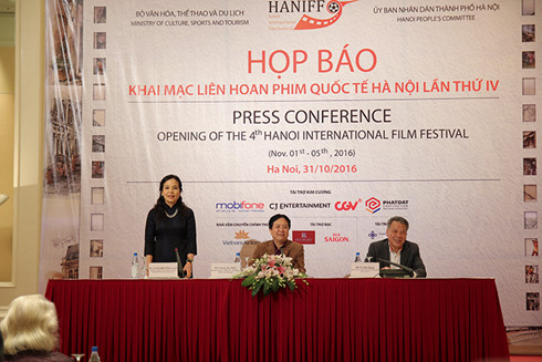 | Từ trái qua: Bà Ngô Phương Lan, Ông Vương Duy Biên và ông Tô Văn Động chủ trì buổi họp báo Liên hoan phim Quốc tế Hà Nội lần IV, diễn ra chiều 31/10 tại Hà Nội. Ảnh: Hoàng Hà |
