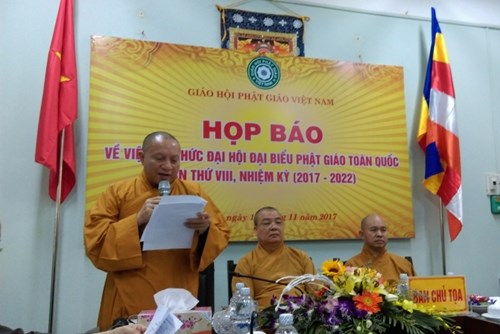 Với chủ đề “Trí tuệ - Kỷ cương - Hội nhập - Phát triển”, Đại hội đại biểu Phật giáo toàn quốc lần thứ VIII (nhiệm kỳ 2017 - 2022) sẽ được tổ chức trong 2 ngày 21 và 22/11/2017 tại Hà Nội với sự tham dự của 1.250 đại biểu. Thông tin trên được Hòa thượng Thích Gia Quang, Phó Chủ tịch Hội đồng Trị sự Trung ương Giáo hội Phật giáo Việt Nam, cho biết tại buổi họp báo chiều 13/11 ở Hà Nội.
