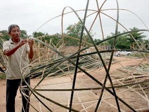 | Sản xuất sản phẩm thủ công mỹ nghệ bằng mây tre, tạo việc làm, thu nhập ổn định lao động địa phương. (Ảnh: TTXVN) |