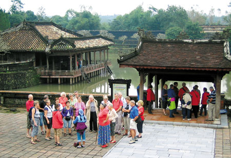 | Khách nước ngoài tham quan di tích Huế. Ảnh: baotintuc.vn |