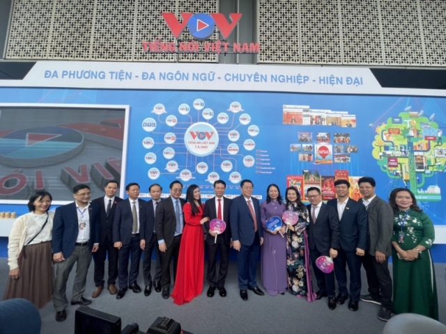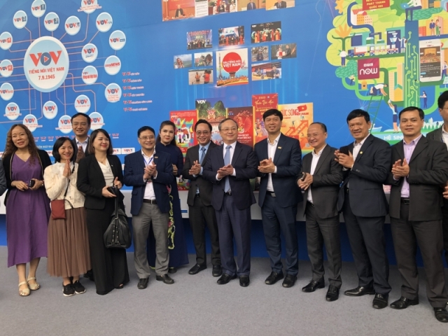 Lãnh đạo Đài Tiếng nói Việt Nam tại gian trưng bày của Đài. Ảnh: VOV |