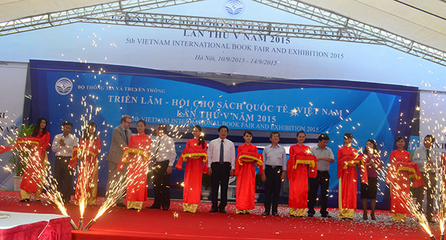 | Lễ cắt băng khai mạc Hội chợ sách. Ảnh: vietnamnet.vn |