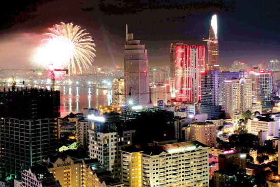 | Bắn pháo hoa chào năm mới 2016 tại thành phố HCM Ảnh: Báo SGGP. |