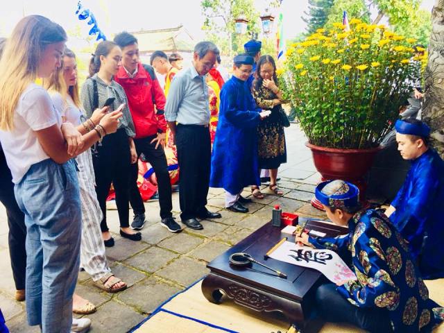 Xem viết thư pháp, xin chữ đầu năm mới trong Hoàng Cung Huế - Ảnh: congluan.vn |