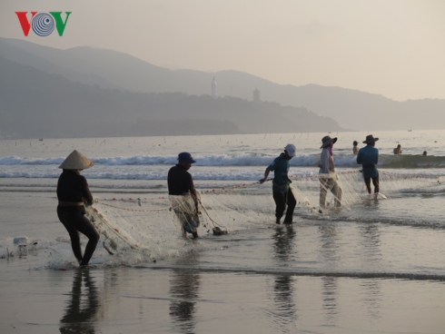Những ngày đầu năm mới, không khí tại bãi thuyền Mân Thái, quận Sơn Trà, thành phố Đà Nẵng khá nhộn nhịp. Từng nhóm ngư dân hối hả kéo lưới lên bờ. Ngư dân Phan Thanh Tuấn, ở phường Mân Thái, cho biết: “Đi chuyến biển đầu năm, mồng 2 tốt ngày, anh em đi bủa lưới ngày kiếm được 4 đến 5 triệu đồng. Chia ra người được 400, 500 ngàn, có hồi từ 700 ngàn đến 1 triệu đồng.”