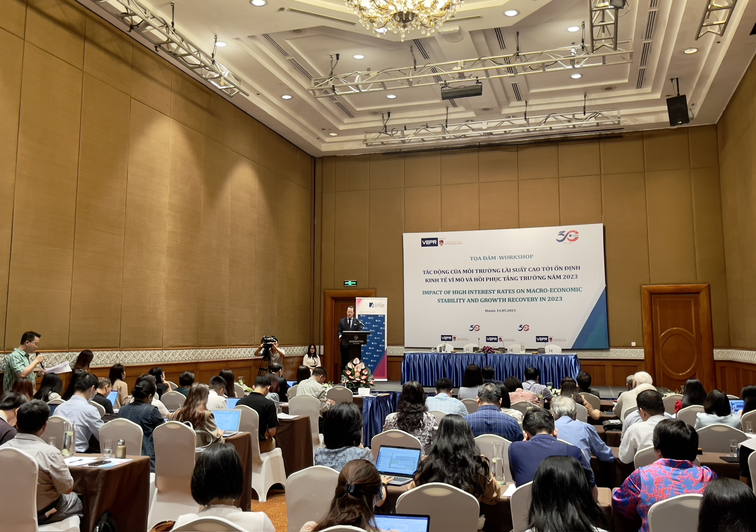 Chính sách tiền tệ cần duy trì trạng thái thích ứng với hiện trạng của nền kinh tế, tiếp tục cân bằng giữa rủi ro tài chính với hỗ trợ phục hồi kinh tế, khơi thông sự luân chuyển của dòng vốn. Đây là khuyến nghị được các chuyên gia đưa ra tại hội thảo tác động của môi trường lãi suất cao tới ổn định kinh tế vĩ mô và hồi phục tăng trưởng năm 2023 do Viện nghiên cứu kinh tế và chính sách (VERP), trường Đại học Kinh tế, Đại học Quốc gia Hà Nội tổ chức hôm nay (11/5), tại Hà Nội.