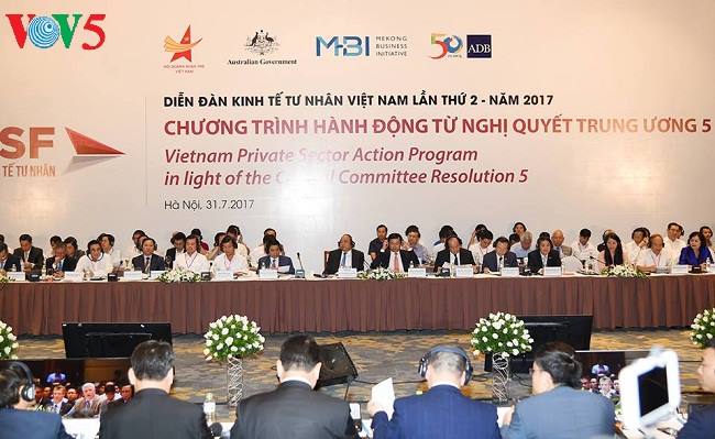 Sáng 31/7, tại Hà Nội, Hội Doanh nhân trẻ Việt Nam tổ chức Diễn đàn kinh tế tư nhân Việt Nam lần thứ 2 năm 2017 với chủ đề “Chương trình hành động của khu vực tư nhân từ Nghị quyết Trung ương 5”.Diễn đàn tập trung thảo luận và đối thoại về lĩnh vực nông nghiệp, du lịch và kinh tế số. Theo thống kê, hiện khu vực kinh tế tư nhân đang đóng góp quan trọng vào tăng trưởng kinh tế đất nước. Từ năm 2010 trở lại đây, kinh tế tư nhân đóng góp trên 43% GDP trong khi tỷ lệ này của khu vực kinh tế nhà nước là khoảng 29%.