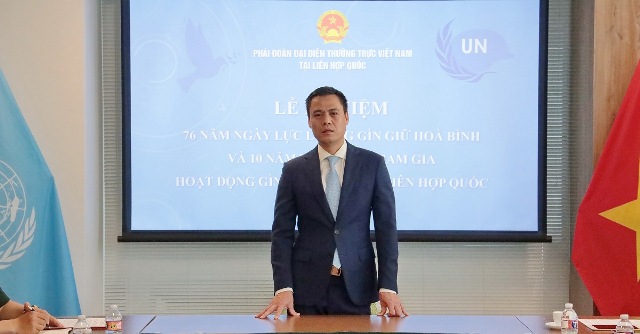 Hôm qua, 24/5, tại New York (Mỹ), Phái đoàn Đại diện Thường trực Việt Nam tại Liên hợp quốc (LHQ) đã tổ chức trang trọng “Lễ kỷ niệm 76 năm Ngày Gìn giữ hòa bình Liên hợp quốc (29/5/1948 – 29/5/2024) và 10 năm Việt Nam tham gia hoạt động Gìn giữ hoà bình Liên hợp quốc (2014 – 2024) ”. Đại sứ, Trưởng Phái đoàn Đặng Hoàng Giang chủ trì buổi lễ.
