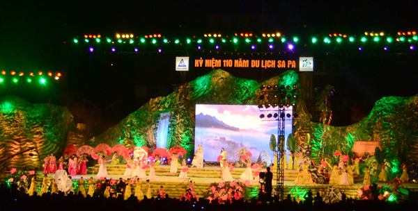 Lễ kỷ niệm diễn ra ấn tượng với màn biểu diễn của hơn 500 diễn viên trong chương trình nghệ thuật “Sa Pa- nơi gặp gỡ đất trời”. Chương trình tái hiện lịch sử hình thành và phát triển của Sa Pa, tôn vinh các giá trị văn hóa phi vật thể và vùng đất Hoàng Liên hùng vĩ, đó là ruộng bậc thang kỳ vĩ, bãi đá cổ huyền bí, thổ cẩm rực rỡ sắc màu, xòe khăn, múa quạt, kèn pí lè, khèn Mông… đặc sắc của nhiều dân tộc bản địa.