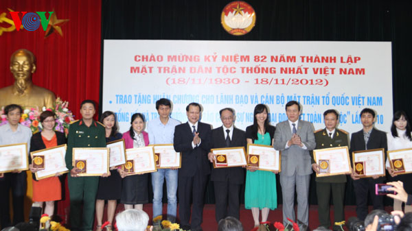 Dịp này, Ủy ban Trung ương Mặt trận Tổ quốc Việt Nam trao giải báo chí “Vì sự nghiệp Đại đoàn kết toàn dân tộc” năm 2012 cho các tập thể và cá nhân.Đài Tiếng nói Việt Nam đạt 6 giải Báo chí Đại đoàn kết năm nay.
