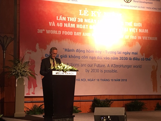 Ông Albert T. Lieberg, Đại diện của FAO tại Việt Nam nói: “Việt Nam chính là một ví dụ về câu chuyện thành công trong xây dựng tổ quốc và xây dựng kinh tế. Mặc dù vậy, chúng ta vẫn cần phải nỗ lực hơn nữa và quan tâm tới Chương trình nghị sự đang có nhiều chỉ số luôn thay đổi này, đặc biệt trong bối cảnh tác động của thiên tai và biến đổi khí hậu ngày càng tăng, gây ra nhiều thách thức nghiêm trọng cho cuộc sống và sinh kế của người dân và tình hình thương mại ngày càng phức tạp cả ở quy mô quốc gia và toàn cầu”,