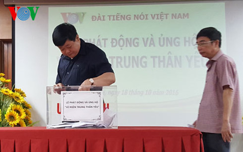 Cũng trong sáng 18/10, tại Trung tâm phát thanh quốc gia, 58 Quán Sứ, Hà Nội, Đài Tiếng nói Việt Nam tổ chức lễ phát động và ủng hộ “Vì miền Trung thân yêu”. Phát biểu tại lễ phát động, Tổng Giám đốc Đài Tiếng nói Việt Nam Nguyễn Thế Kỷ đề nghị các đơn vị của Đài Tiếng nói Việt Nam tiếp tục động viên cán bộ, công chức, viên chức ủng hộ giúp đỡ bà con miền Trung bị ảnh hưởng vì lũ lụt. Tổng Giám đốc Đài Tiếng nói Việt Nam Nguyễn Thế Kỷ nhấn mạnh:“Cùng với nguồn lực của Nhà nước, nguồn lực của xã hội lúc này rất quan trọng. Chúng ta là những người làm báo, trước hết phải có ý thức sâu sắc và sự đồng cảm to lớn đối với đời sống của bà con hiện nay. Tôi đề nghị các đơn vị kịp thời thông tin, các đơn vị lên sóng trực tiếp thông tin sớm để có tác động đến công chúng, làm cho cuộc vận động này của cả nước lan tỏa và có hiệu quả thiết thực.”