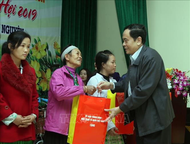 Ông Trần Thanh Mẫn, Bí thư Trung ương Đảng, Chủ tịch Uỷ ban Trung ương Mặt trận Tổ quốc Việt Nam đến thăm và tặng quà cho các gia đình chính sách, hộ có hoàn cảnh khó khăn, học sinh nghèo tại xã Quang Sơn, huyện Đồng Hỷ, tỉnh Thái Nguyên nhân dịp Tết Nguyên đán Kỷ Hợi 2019. - Ảnh: Nguyễn Dân/ TTXVN |