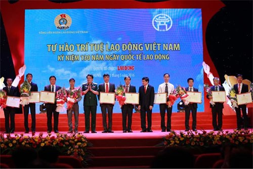 Nhân dịp này, Tổng Liên đoàn Lao động Việt Nam vinh danh 10 sản phẩm “Tự hào trí tuệ lao động Việt Nam ”. Đây là những sáng kiến do chính những người lao động trực tiếp sáng tạo ra, nhiều sản phẩm sử dụng công nghệ và chất liệu do Việt Nam sản xuất, có khả năng thay thế hàng nhập ngoại.