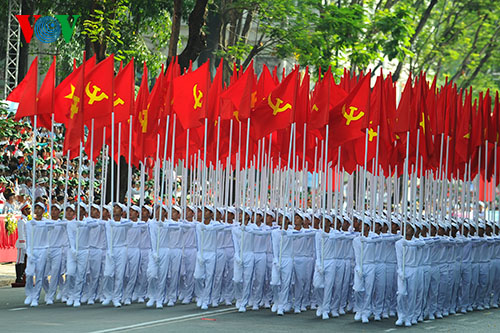 (VOV5)- Đúng 6h30 sáng nay 30/4, tại TP.HCM diễn ra lễ mít tinh, duyệt binh, diễu hành mừng 40 năm thống nhất đất nước.