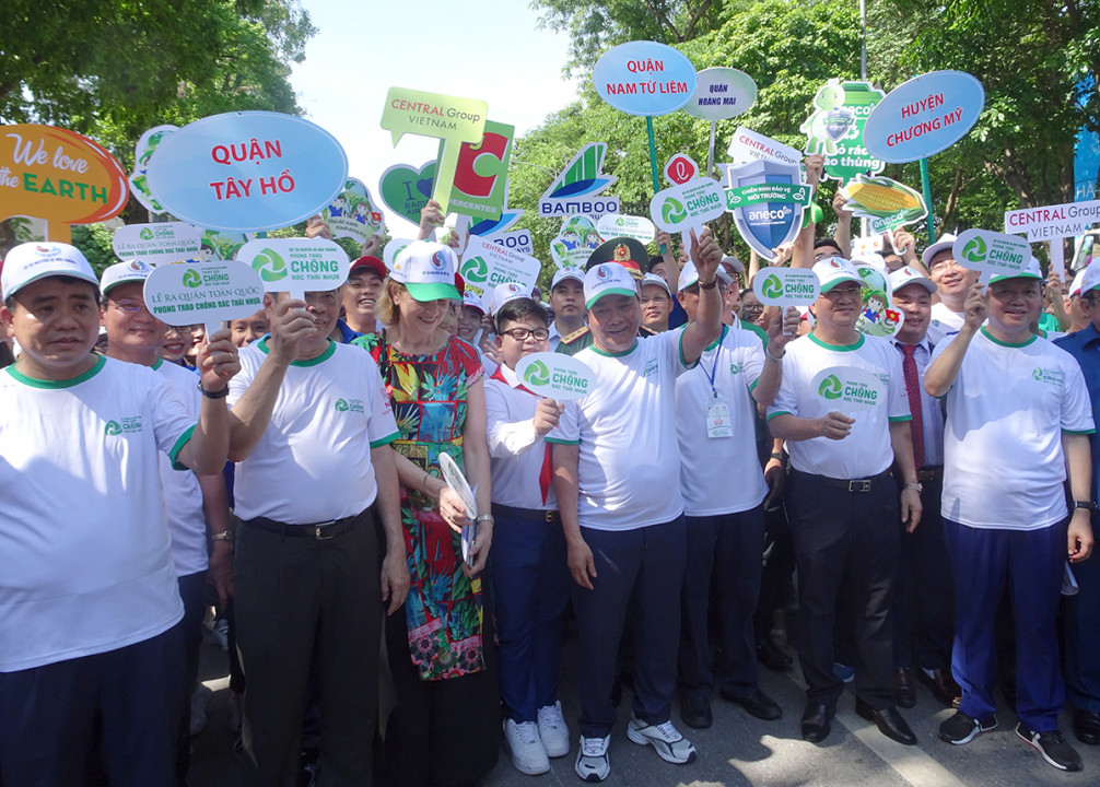 Ngay sau Lễ phát động toàn quốc Phòng trào chống rác thải nhựa, Thủ tướng Nguyễn Xuân Phúc, lãnh đạo các bộ ngành và người dân thủ đô đã đi bộ tuần hành tại Phố đi bộ, khu vực Bờ hồ Hoàn Kiếm để cổ vũ và tham dự các hoạt động hưởng ứng phong trào chống rác thải nhựa lan tỏa, phát triển mạnh mẽ hơn trên phạm vi cả nước.
