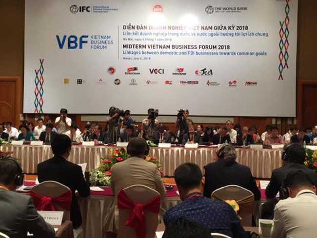 Diễn đàn doanh nghiệp Việt Nam (VBF) giữa kỳ 2018 với chủ đề "liên kết doanh nghiệp trong nước và nước ngoài - Hướng tới lợi ích chung" do Liên minh Diễn đàn Doanh nghiệp Việt Nam phối hợp với Bộ Kế hoạch và Đầu tư, Ngân hàng Thế giới (World Bank) và Tổ chức Tài chính Quốc tế (IFC) tổ chức ngày 04/07, tại Hà Nội.