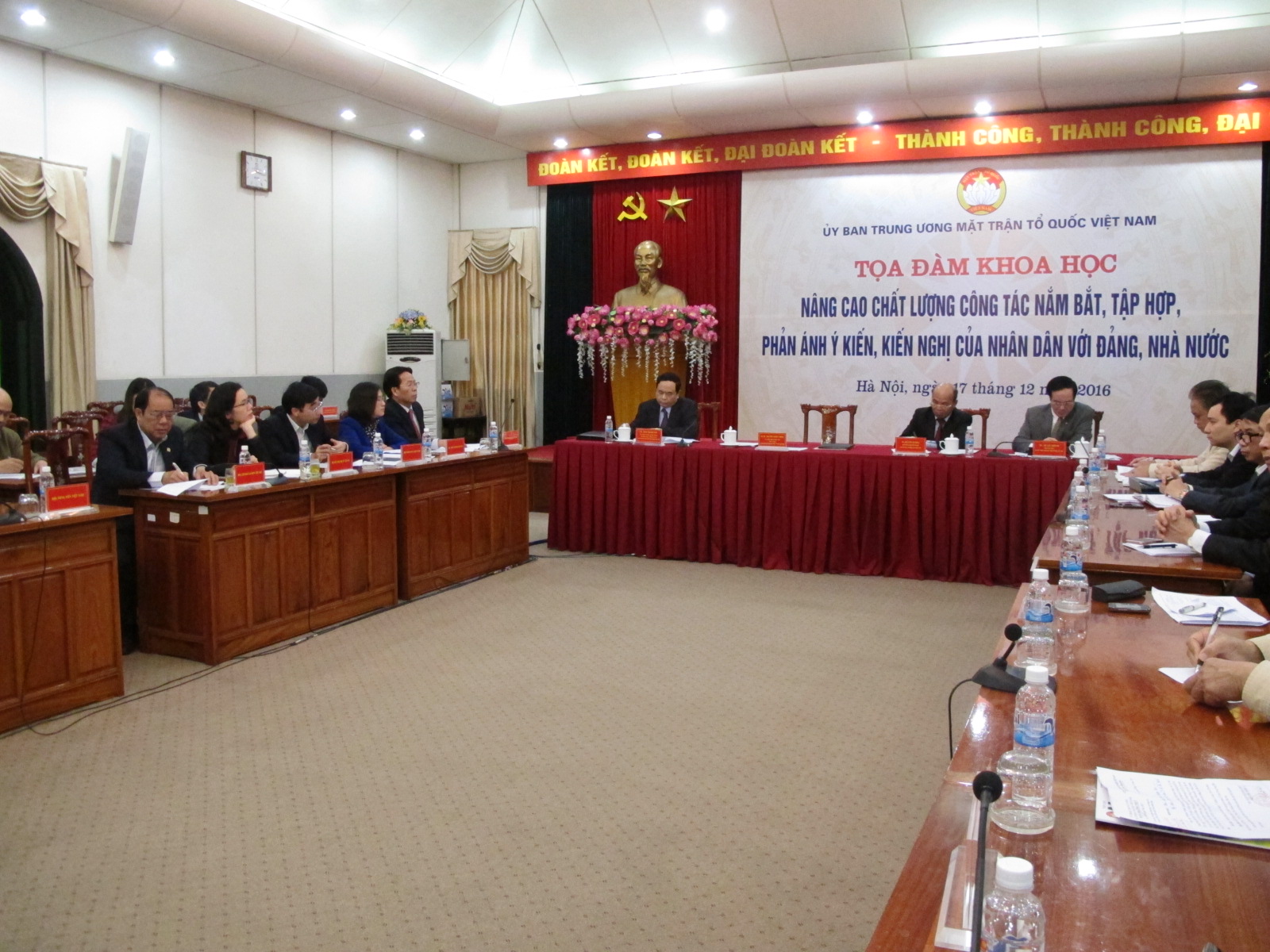 Phát biểu khai mạc tại tọa đàm, Chủ tịch Ủy ban Trung ương Mặt trận Tổ quốc Việt Nam Nguyễn Thiện Nhân nêu rõ tìm hiểu những gì người dân suy nghĩ, mong muốn vừa là nhu cầu, vừa là chức năng của Mặt trận Tổ quốc đã được hiến định và luật hóa. Luật Mặt trận Tổ quốc đã quy định Mặt trận Tổ quốc Việt Nam đại diện cho quyền, lợi ích hợp pháp của nhân dân, điều đó yêu cầu Mặt trận Tổ quốc Việt Nam phải biết nhân dân đang nghĩ gì. Đây cũng là cốt lõi trong công tác giám sát của Mặt trận Tổ quốc Việt Nam. Tại mỗi kỳ họp Quốc hội, Mặt trận Tổ quốc nhận được 23.000 kiến nghị nhưng chỉ có 15 phút để báo cáo, vì vậy, Mặt trận cần lựa chọn những vấn đề phản ánh được ý kiến, tâm tư của đa số hoặc những vấn đề có tính dự báo để báo cáo trước Quốc hội. Để phản ánh kịp thời, chính xác tình hình đất nước, cần có sự thống nhất trong phương pháp thực hiện “Chúng ta xây dựng chính sách chúng ta cần biết hiện nay nhân dân đang suy nghĩ gì, họ có nhu cầu gì lĩnh vực đó. Chẳng hạn chính sách phát triển nông nghiệp, chính sách phát triển y tế, vậy cái việc nắm bắt tình hình nhân dân đôi lúc phải được chuẩn xác hóa về điều tra xã hội học, trả lời câu hỏi ở lĩnh vực đó đa số người dân muốn gì. Thông thường chính sách dành cho đa số. Chính sách dành cho công nhân nhân về bảo hiểm, chính sách dành cho nông dân sản xuất hộ, kinh tế hộ. Điều tra xem hiện trạng họ suy nghĩ và xây dựng hệ thống chính sách”.