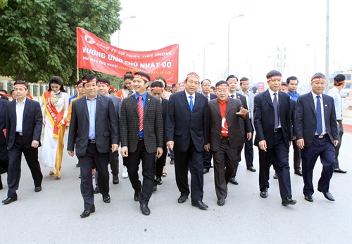 | Phó Thủ tướng thường trực Chính phủ Trương Hòa Bình và các đại biểu diễu hành hưởng ứng ngày hội. Ảnh: Phạm Kiên- TTXVN |