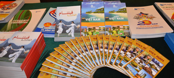 | Các sách, tranh ảnh giới thiệu về Việt Nam tại Chương trình (Ảnh: quehuongonline.vn) |