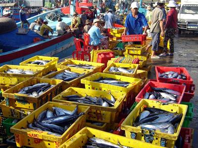Ngư dân Bình Định chuyển cá lên bờ sau đợt đánh bắt cá - Ảnh: Tiền Phong