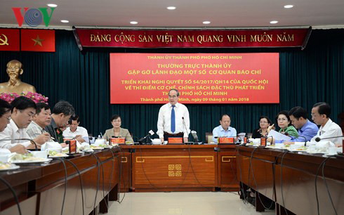 Bí thư Nguyễn Thiện Nhân khẳng định những cơ chế đặc thù sẽ giúp Thành phố Hồ Chí Minh phát triển hơn trong giai đoạn tới: “Chúng tôi rất mong 2018 thực sự là năm khởi đầu ba năm đột phá đổi mới cơ chế chính sách trên nền tàng kết luận 21 của Bộ Chính trị và Nghị quyết 54. Qua đó hàng tháng, hàng quý, hàng năm đời sống nhân dân tiến bộ, kinh tế phát triển, quốc phòng an ninh được giữ vững và niềm tin, niềm vui trở thành thường xuyên trong lòng mỗi con người, đem lại niềm vui cho mỗi gia đình, đem lại hạnh phúc cho nhân dân và góp phần cùng cả nước”.