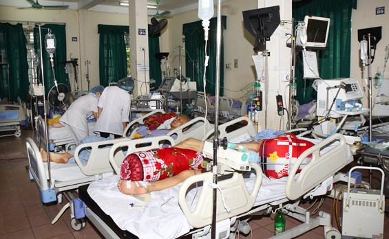 | Chăm sóc bệnh nhân ở phòng cấp cứu, Bệnh viện Gang thép Thái Nguyên. Ảnh: Thế Hà. |
