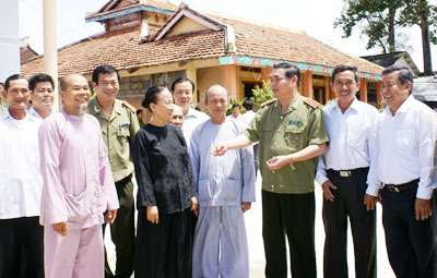| Ông Lê Hồng Anh trong một lần tiếp xúc cử tri là các tín đồ phật giáo Hòa Hảo tại Cần Thơ (Ảnh: cand.com) |