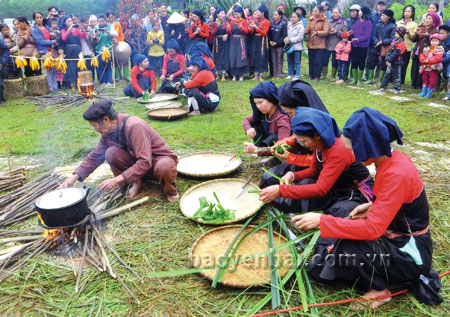 Thi làm bánh chim gâu của người Cao Lan. (Ảnh: Hoàng Đô)