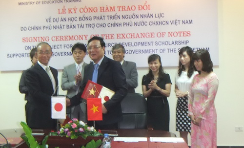 Bộ trưởng Phạm Vũ Luận và Đại sứ Yasuaki Tanizaki đã chứng kiến lễ ký thỏa thuận viện trợ 324 triệu Yên Nhật cho Việt Nam tiếp tục thực hiện chương trình cho năm tài khóa 2013-2014 và những năm tiếp theo. Tháng 8 năm nay, 30 lưu học sinh Việt Nam sẽ sang Nhật Bản theo chương trình học bổng này./.