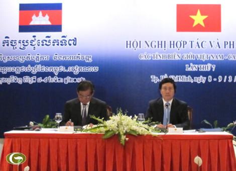 | Bộ trưởng Phạm Bình Minh (bên phải) và Phó Thủ tướng, Bộ trưởng Bộ Nội vụ Campuchia Sar Kheng đồng chủ trì hội nghị Hợp tác và Phát triển các tỉnh biên giới Việt Nam - Campuchia lần thứ 7. |
