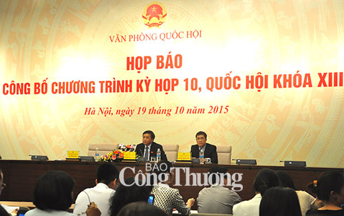 (VOV5) - Sáng nay (19/10), Văn phòng Quốc hội họp báo công bố chương trình kỳ họp thứ 10, Quốc hội khóa XIII, dự kiến khai mạc vào sáng mai (20/10). Đây là kỳ họp cuối năm, cũng là kỳ họp gần cuối nhiệm kỳ nên khối lượng công việc khá lớn. Dự kiến có nhiều nội dung mới tại kỳ họp này.